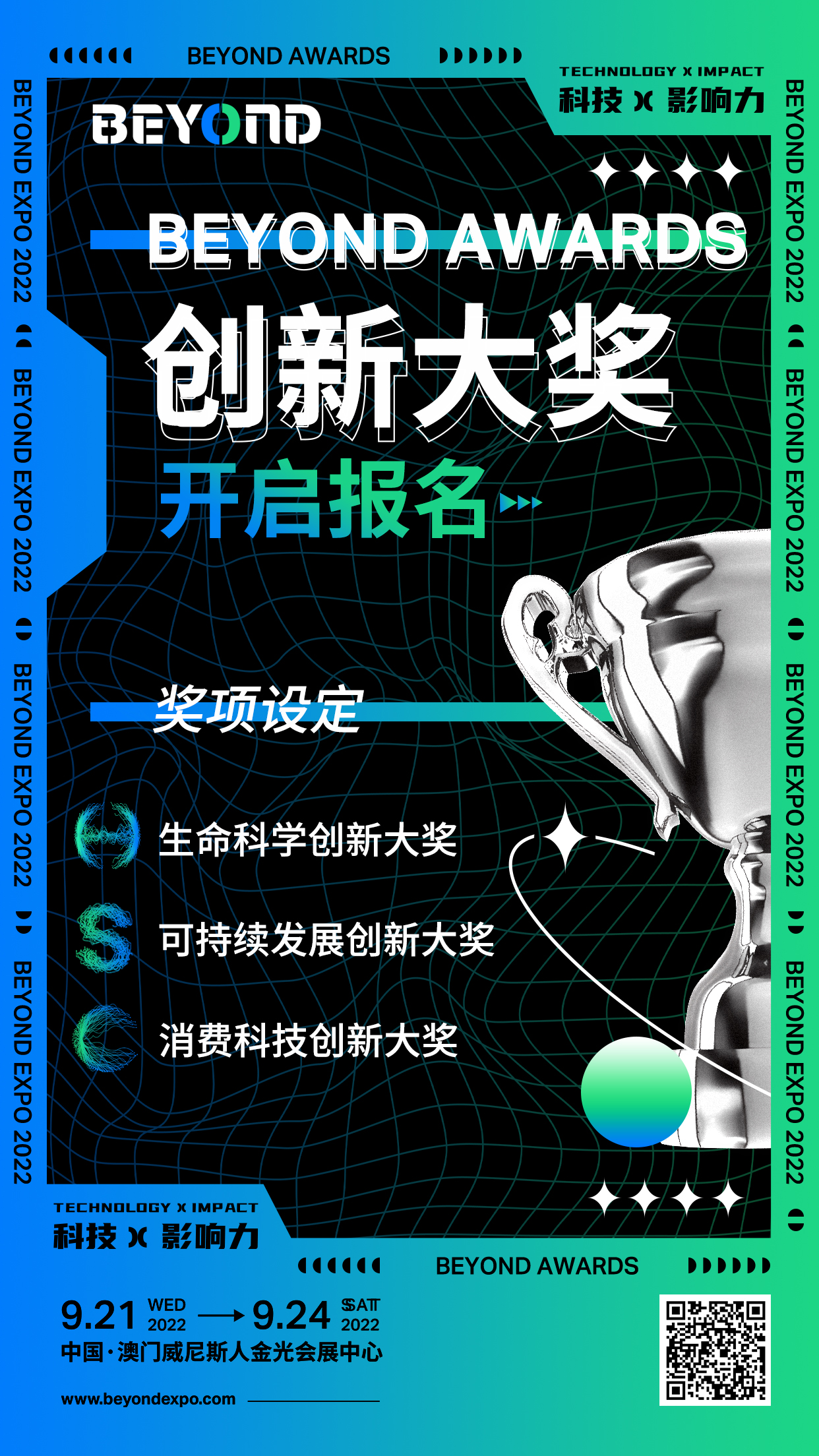此外,BEYOND Expo 2022还将环绕三大子品牌生命科学、 可继续开展、消费科技特别设置了 BEYOND 科技大奖(BEYOND Awards),包含BEYOND Awards立异大奖及BEYOND Awards影响力大奖,经过对各个职业范畴中具有出色体现、商场开展潜力和社会影响力的个人或科技公司的产品及服务的发现和鼓舞,向全球各界展现科技立异及科技影响力的无限或许。